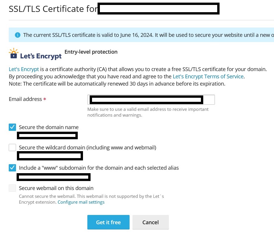 There, click Re-issue certificate or Install Certificate. When initiating the process, remember to add the entry for www as well